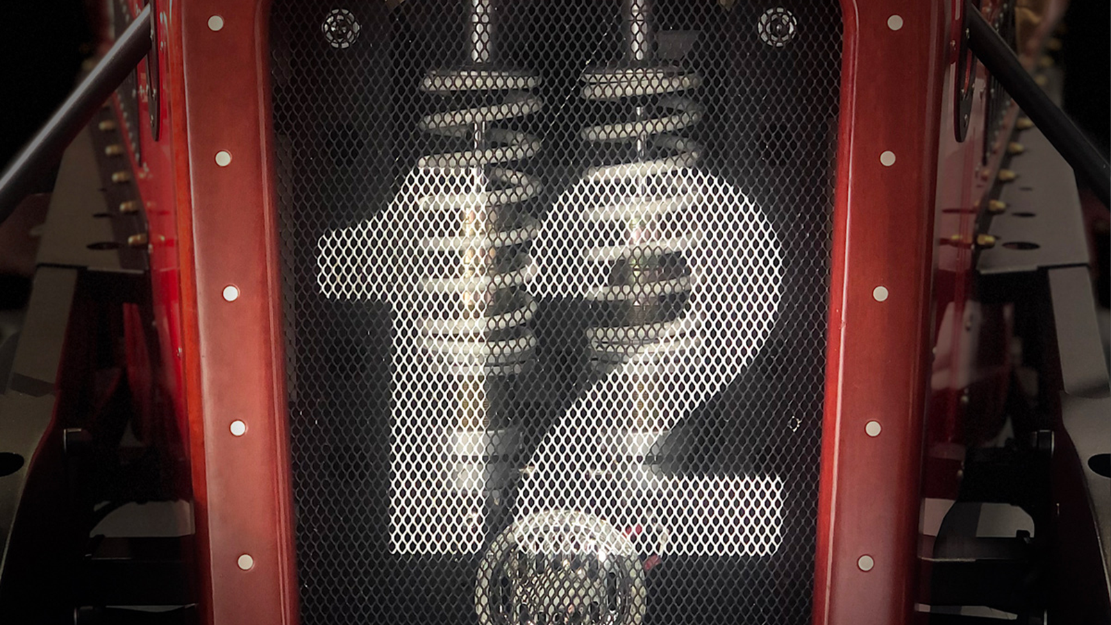 The colour of the rear cover is RAL 3011, a specific gloss paint for the fibre. The cover has been designed in several moulds in order to benefit from different thicknesses and strengths according to its constraints and with maximum weight savings.