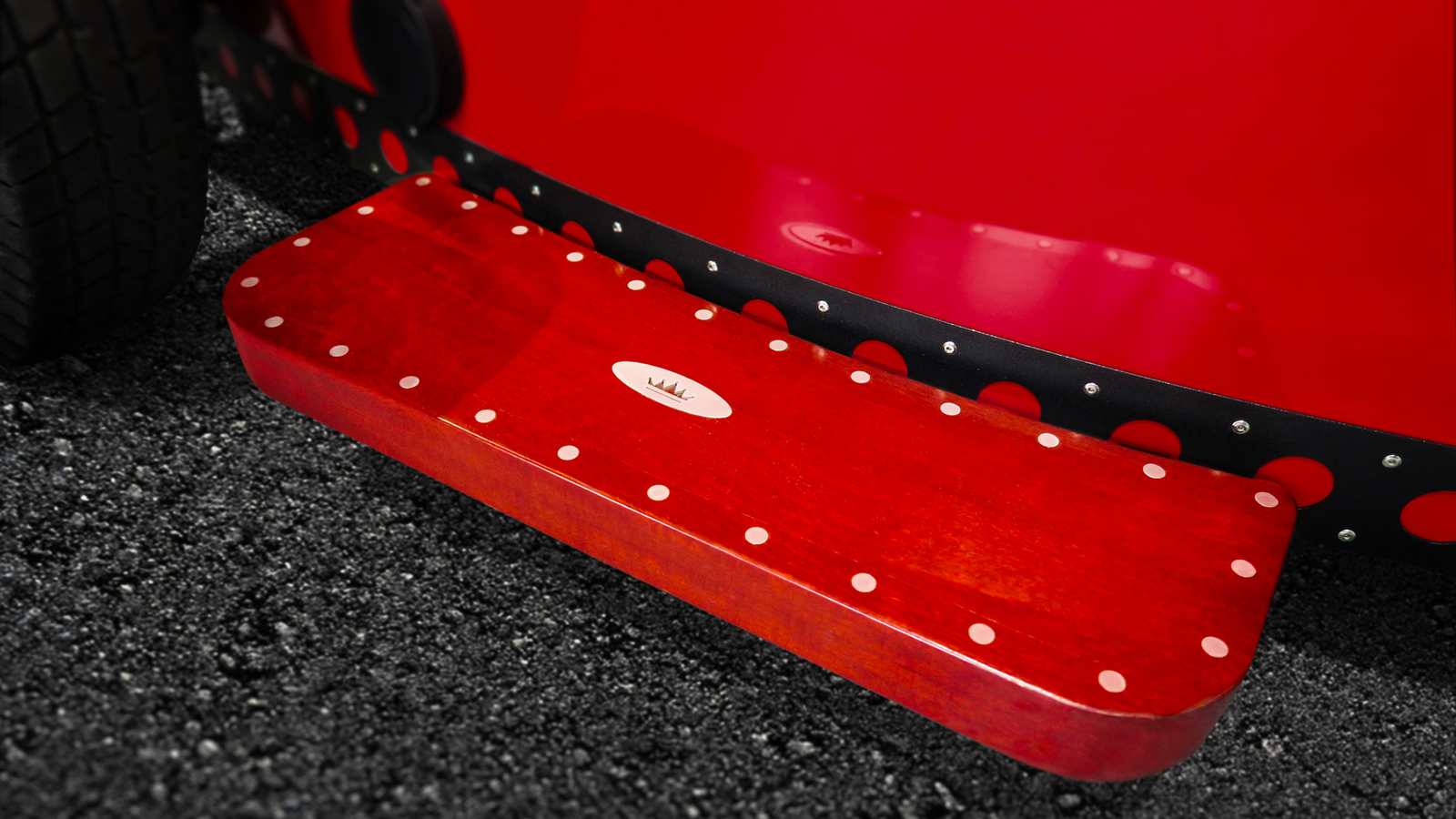 Carved in exotic wood, these running boards have been designed to fit in with the style of the vehicle but also thought to be as common as possible for accessibility. They’ve been marked with aluminum inserts.